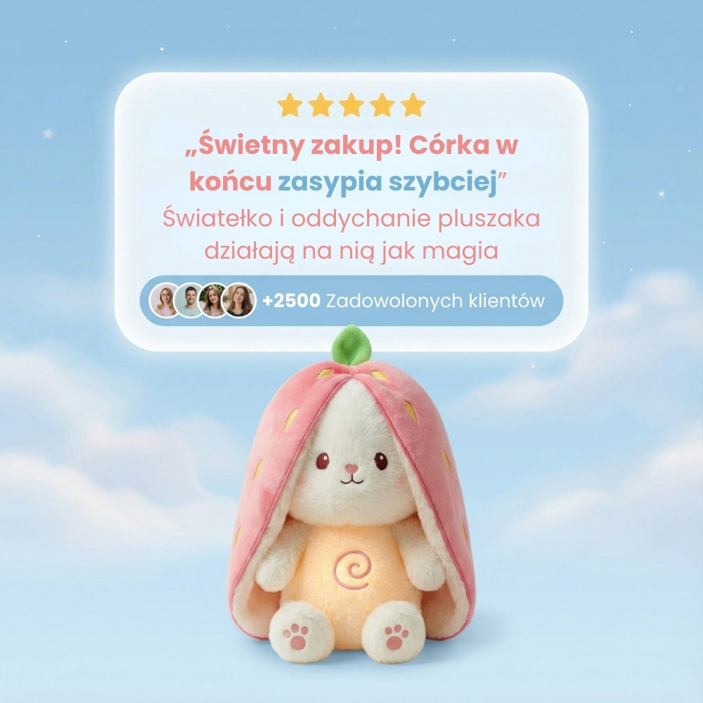 Oddychający Miś Truskawka to miękki, otulający pluszak stworzony do wyciszenia i relaksu. Jego delikatne „oddychanie”, ciepłe światło oraz spokojne dźwięki tworzą atmosferę, która pomaga uspokoić się po długim dniu i łatwiej zasnąć. Daje poczucie ciepła, komfortu i bezpieczeństwa. Idealny do wieczornego odpoczynku, relaksu na kanapie i spokojnego snu.